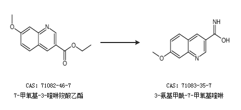 1.通过7-甲氧基-3-喹啉羧酸乙酯合成3-氨基甲酰-7-甲氧基喹啉
