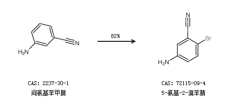 2.通过间氨基苯甲腈合成5-氨基-2-溴苯腈,收率约82%;