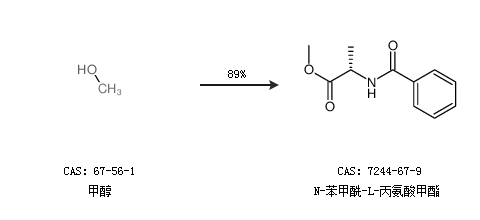 2.通过甲醇合成N-苯甲酰-L-丙氨酸甲酯,收率约89%;