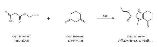 1.通过乙酰乙酸乙酯和1,3-环己二酮合成3-甲基-4-氧-4,5,6,7-四氢-1氢-吲哚-2-甲酸乙酯,收率约51%;