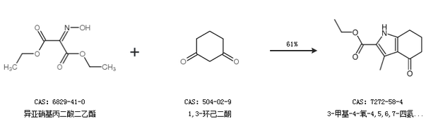 2.通过异亚硝基丙二酸二乙酯和1,3-环己二酮合成3-甲基-4-氧-4,5,6,7-四氢-1氢-吲哚-2-甲酸乙酯,收率约61%;