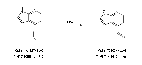 1.通过7-氮杂吲哚-4-甲腈合成7-氮杂吲哚-3-甲醛,收率约52%;
