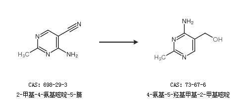 2.通过2-甲基-4-氨基嘧啶-5-腈合成4-氨基-5-羟基甲基-2-甲基嘧啶
