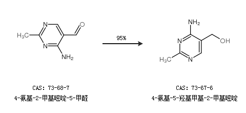 1.通过4-氨基-2-甲基嘧啶-5-甲醛合成4-氨基-5-羟基甲基-2-甲基嘧啶,收率约95%;