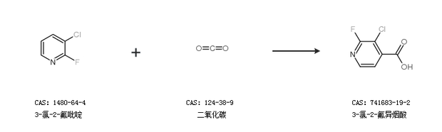 1.通过3-氯-2-氟吡啶和二氧化碳合成3-氯-2-氟异烟酸