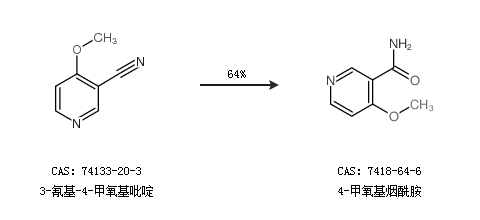 1.通过3-氰基-4-甲氧基吡啶合成4-甲氧基烟酰胺,收率约64%;