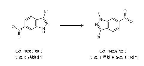 2.通过3-溴-6-硝基吲唑合成3-溴-1-甲基-6-硝基-1H-吲唑