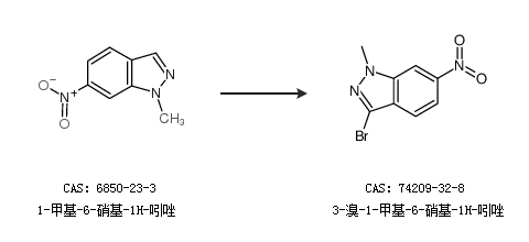 1.通过1-甲基-6-硝基-1H-吲唑合成3-溴-1-甲基-6-硝基-1H-吲唑