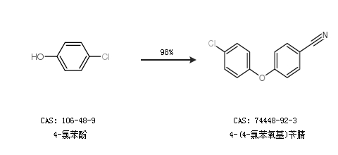1.通过4-氯苯酚合成4-(4-氯苯氧基)苄腈,收率约98%;