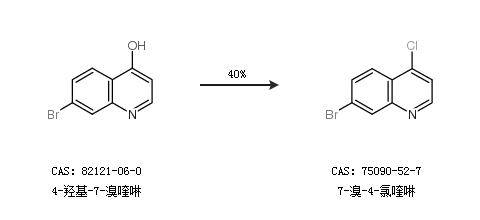 1.通过4-羟基-7-溴喹啉合成7-溴-4-氯喹啉,收率约40%;