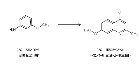 1.通过间氨基苯甲醚合成4-氯-7-甲氧基-2-甲基喹啉