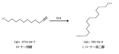 1.通过10-十一炔醇合成1,11-十一烷二醇,收率约81%;