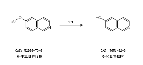 1.通过6-甲氧基异喹啉合成6-羟基异喹啉,收率约82%;