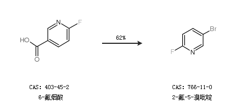 1.通过6-氟烟酸合成2-氟-5-溴吡啶,收率约62%;