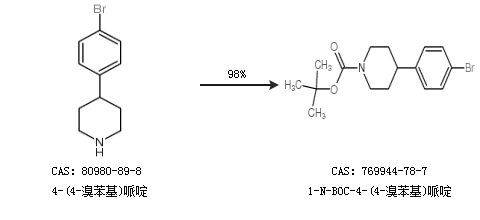 1.通过4-(4-溴苯基)哌啶合成1-N-BOC-4-(4-溴苯基)哌啶,收率约98%;