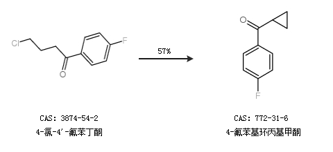 1.通过4-氯-4''-氟苯丁酮合成4-氟苯基环丙基甲酮,收率约57%;