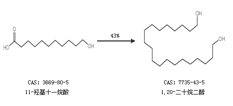 2.通过11-羟基十一烷酸合成1,20-二十烷二醇,收率约43%;