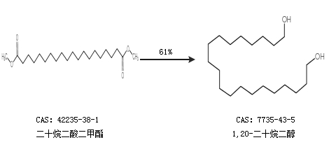1.通过二十烷二酸二甲酯合成1,20-二十烷二醇,收率约61%;