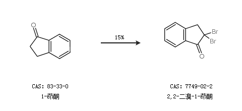 2.通过1-茚酮合成2,2-二溴-1-茚酮,收率约15%;