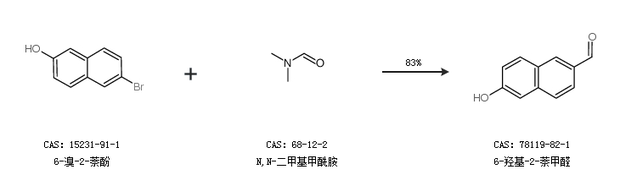 2.通过6-溴-2-萘酚和N,N-二甲基甲酰胺合成6-羟基-2-萘甲醛,收率约83%;