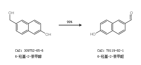 1.通过6-羟基-2-萘甲醇合成6-羟基-2-萘甲醛,收率约99%;