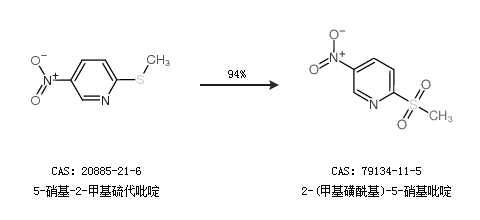 1.通过5-硝基-2-甲基硫代吡啶合成2-(甲基磺酰基)-5-硝基吡啶,收率约94%;