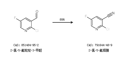2.通过2-氯-5-氟吡啶-3-甲醛合成2-氯-5-氟烟腈,收率约89%;