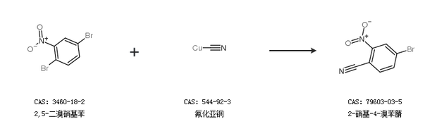 1.通过2,5-二溴硝基苯和氰化亚铜合成2-硝基-4-溴苯腈