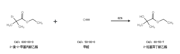 1.通过2-溴-2-甲基丙酸乙酯和甲醛合成2-羟基异丁酸乙酯,收率约82%;