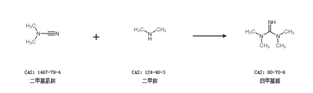 1.通过二甲基氢胺和二甲胺合成四甲基胍
