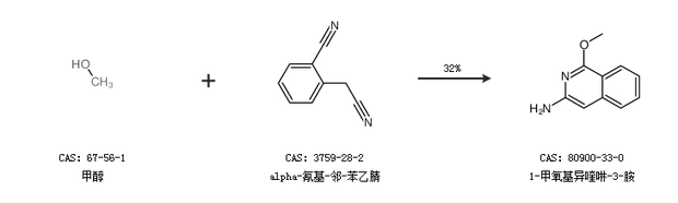 2.通过甲醇和alpha-氰基-邻-苯乙腈合成1-甲氧基异喹啉-3-胺,收率约32%;
