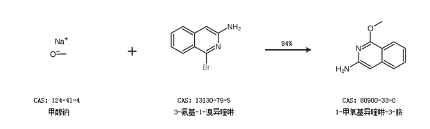 1.通过甲醇钠和3-氨基-1-溴异喹啉合成1-甲氧基异喹啉-3-胺,收率约94%;