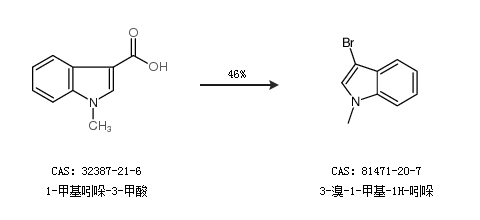 2.通过1-甲基吲哚-3-甲酸合成3-溴-1-甲基-1H-吲哚,收率约46%;