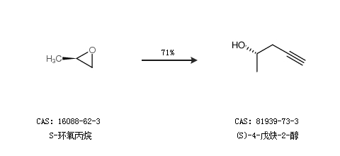 1.通过S-环氧丙烷合成(S)-4-戊炔-2-醇,收率约71%;