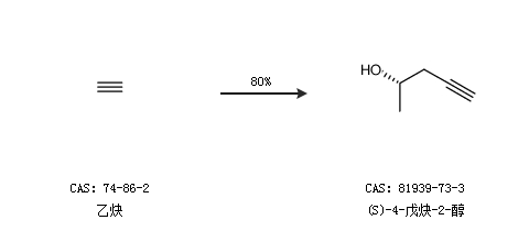 2.通过乙炔合成(S)-4-戊炔-2-醇,收率约80%;