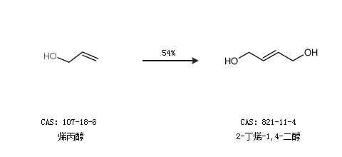 1.通过烯丙醇合成2-丁烯-1,4-二醇,收率约54%;