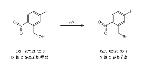 2.通过(5-氟-2-硝基苯基)甲醇合成5-氟-2-硝基苄溴,收率约92%;