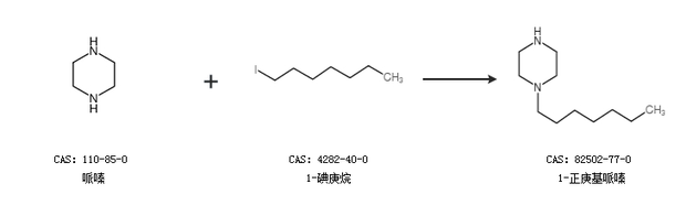 1.通过1-碘庚烷和1-Boc-哌嗪合成1-正庚基哌嗪