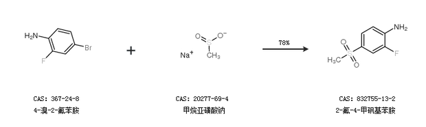 2.通过4-溴-2-氟苯胺和甲烷亚磺酸钠合成2-氟-4-甲砜基苯胺,收率约78%;