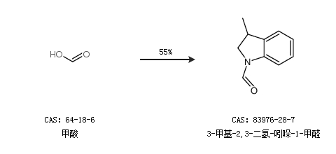2.通过甲酸合成3-甲基-2,3-二氢-吲哚-1-甲醛,收率约55%;