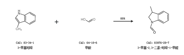 1.通过3-甲基吲哚和甲酸合成3-甲基-2,3-二氢-吲哚-1-甲醛,收率约88%;