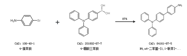 1.通过4-溴苯胺和4-硼酸三苯胺合成N4,n4-二苯基-[1,1-联苯]-4,4-二胺,收率约87%;