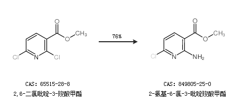2.通过2,6-二氯吡啶-3-羧酸甲酯合成2-氨基-6-氯-3-吡啶羧酸甲酯,收率约76%;