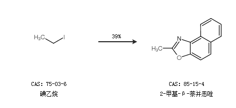 1.通过碘乙烷合成2-甲基-β-萘并恶唑,收率约39%;