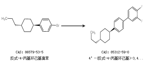 1.通过反式-4-丙基环己基溴苯合成4’-(反式-4-丙基环己基)-3,4-二氟联苯