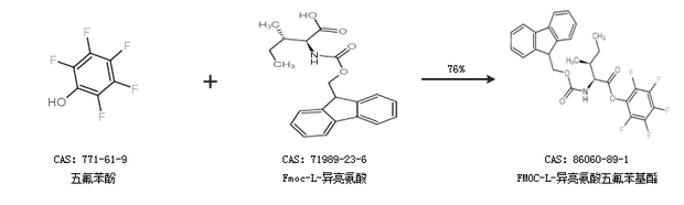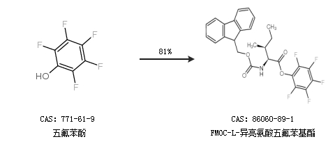 1.通过五氟苯酚合成FMOC-L-异亮氨酸五氟苯基酯,收率约81%;