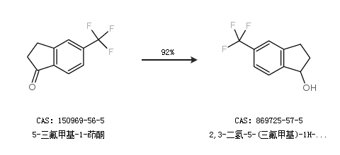 1.通过5-三氟甲基-1-茚酮合成2,3-二氢-5-(三氟甲基)-1H-茚-1-醇,收率约92%;