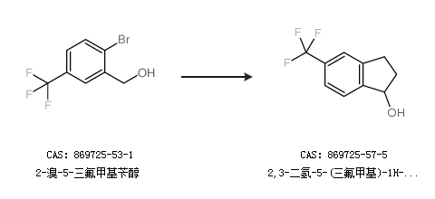 2.通过2-溴-5-三氟甲基苄醇合成2,3-二氢-5-(三氟甲基)-1H-茚-1-醇