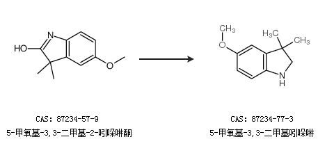 1.通过5-甲氧基-3,3-二甲基-2-吲哚啉酮合成5-甲氧基-3,3-二甲基吲哚啉