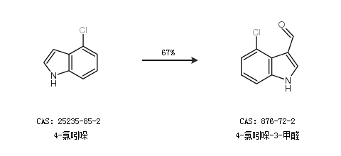 2.通过4-氯吲哚合成4-氯吲哚-3-甲醛,收率约67%;